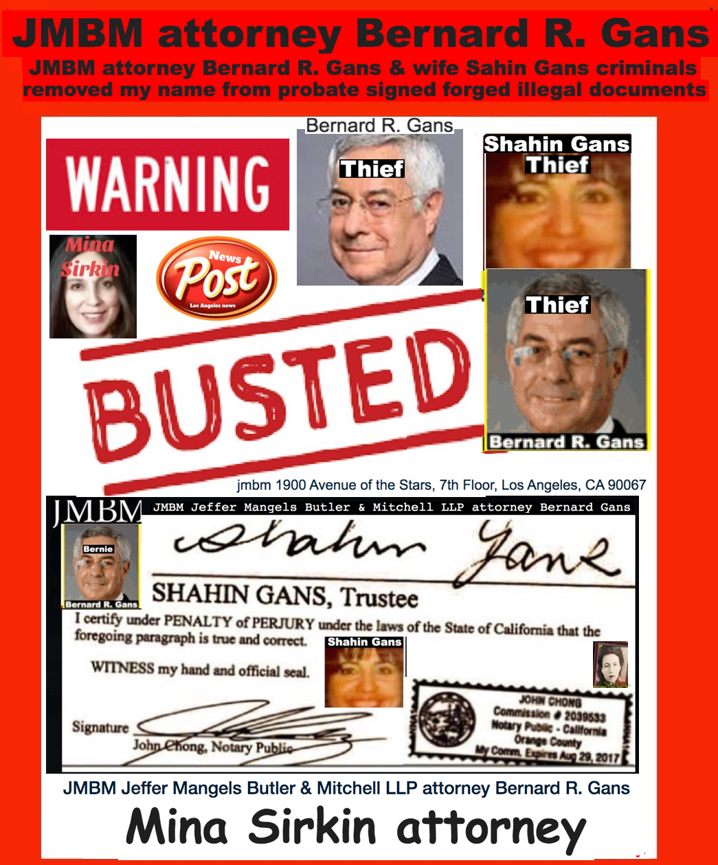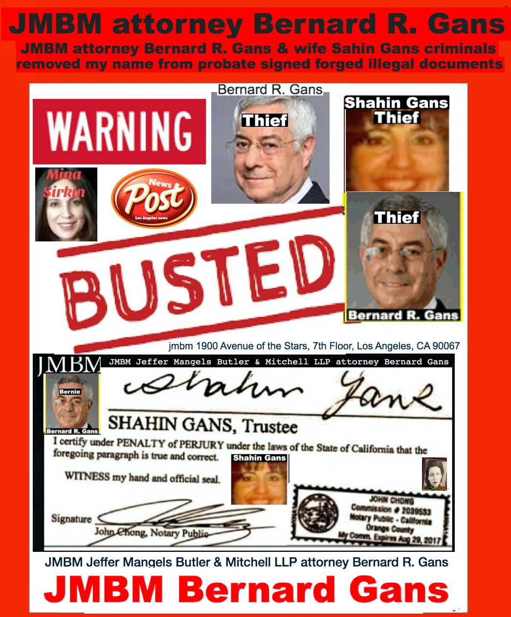 Century City Police 90067 Department JMBM attorney Thief Bernard R. Gans Jeffer Mangels Butler & Mitchel LLP JMBM attorney thief you have 24 hours to place the headstone or we are going to Century City Police department to report your crimes